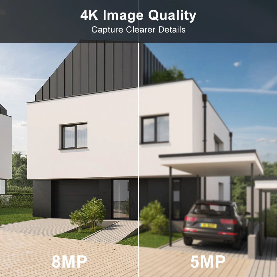 8MP high resolution, much clearer than 1080p and 4MP. All cameras provide incredibly bright and in real color, which enables you to see all objects very clearly.