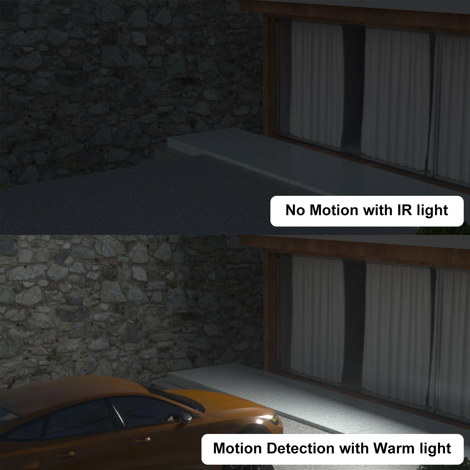 When there is no one or vehicle within the monitoring range, the monitoring displays a black and white screen; When a person or vehicle enters the monitoring range, the monitoring automatically displays a color picture.