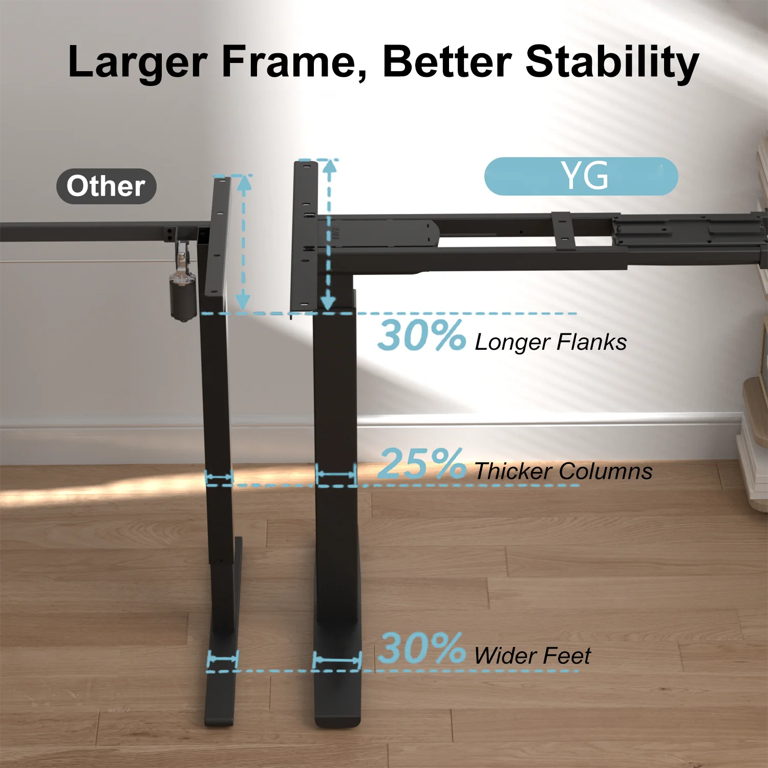 * POWERFUL AND QUIET DUAL MOTORS - Equipped with dual motors, this heavy duty gaming desk ensures smooth and silent height transitions. The powerful mechanism enhances stability and reliability, making it a standout stand up desk for any setting