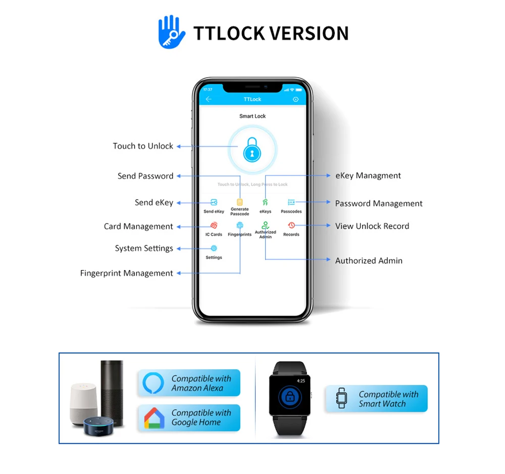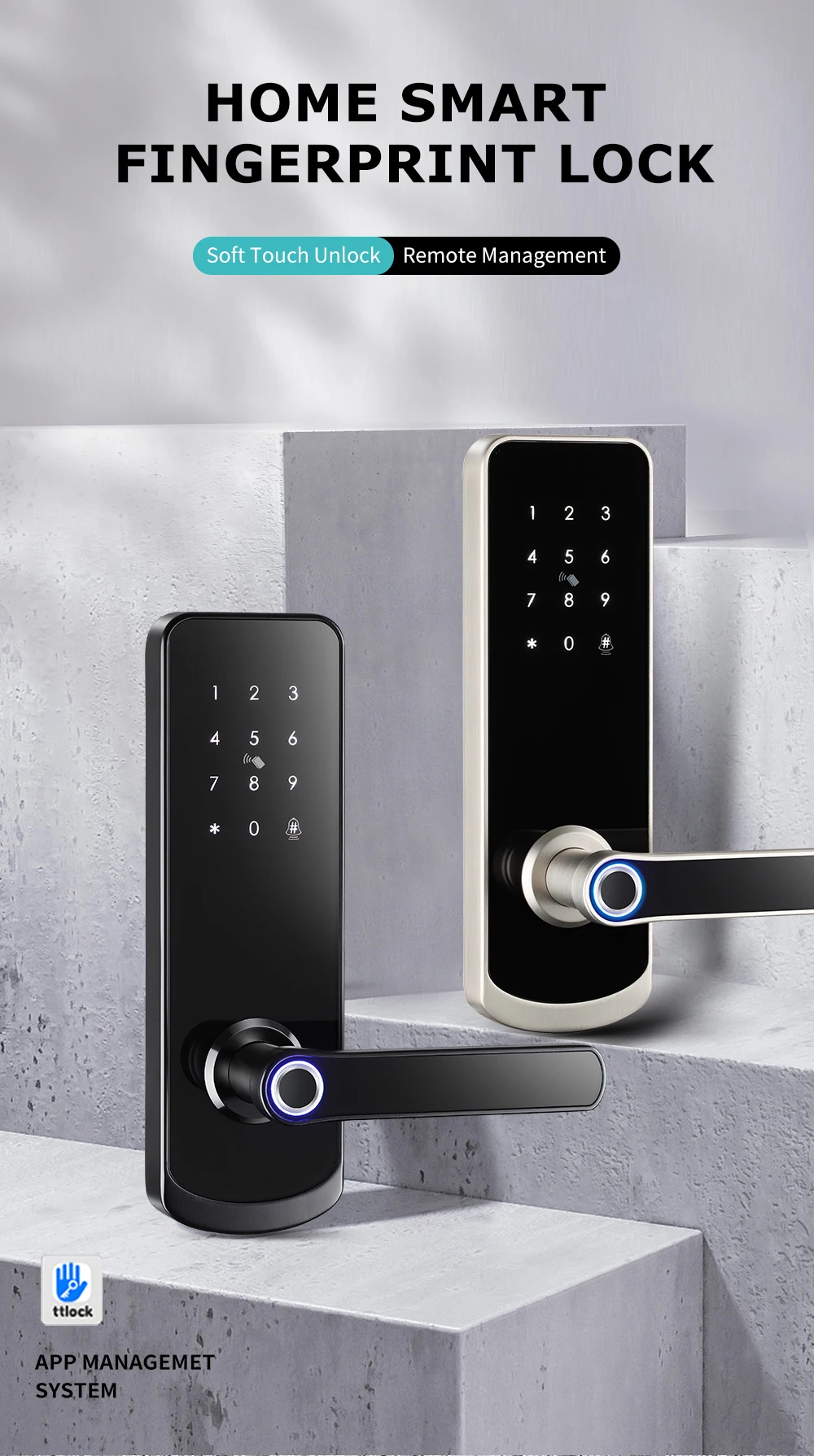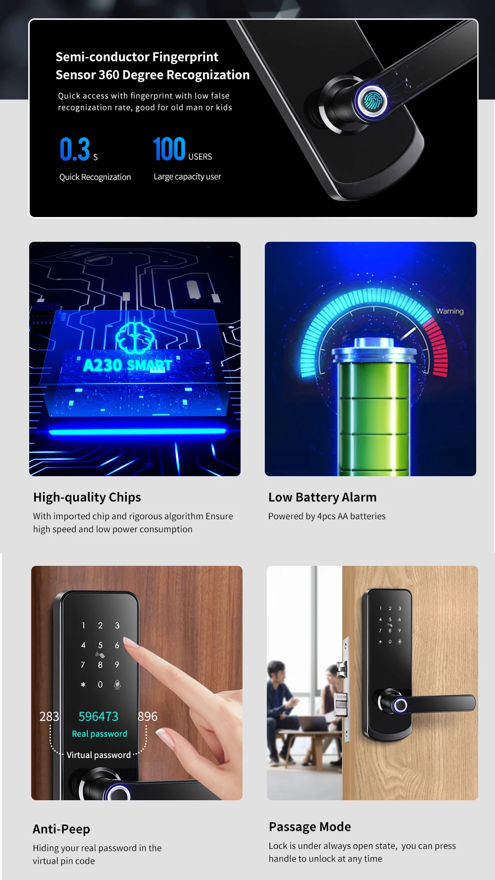 Unlock way: fingerprint+passcode+card+key+APP