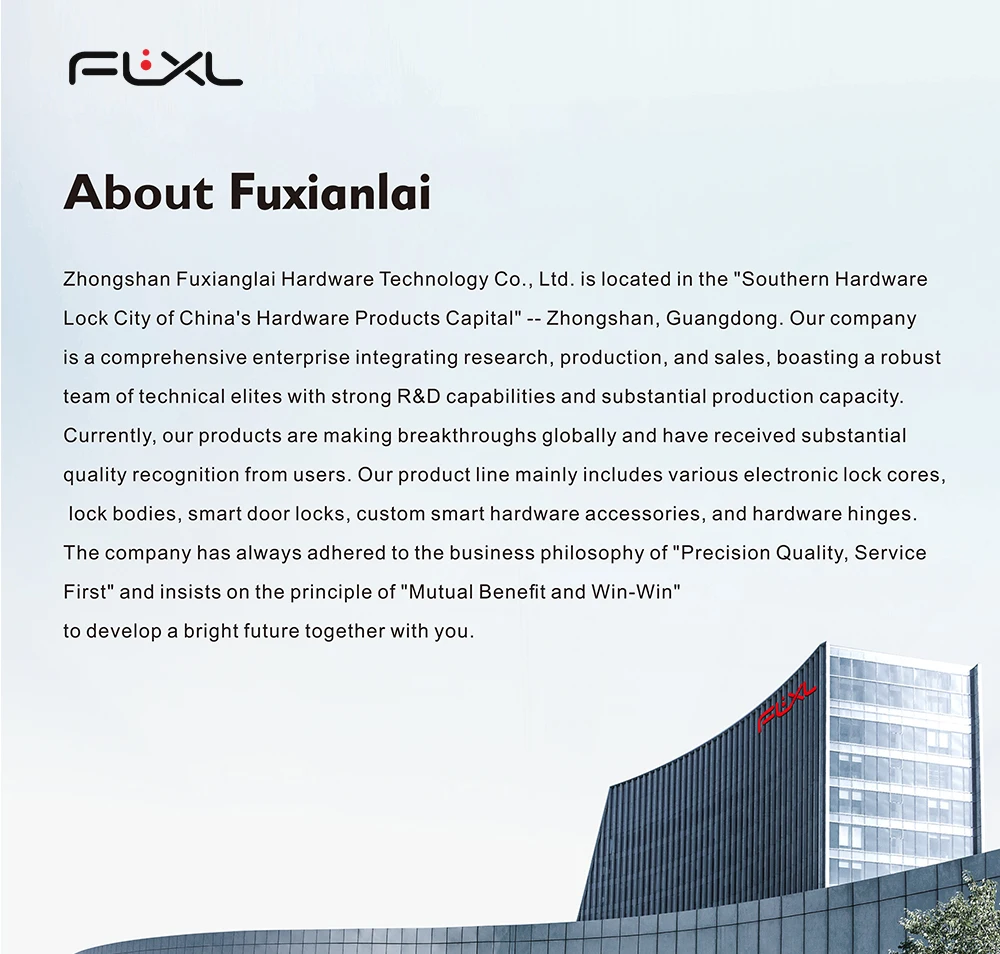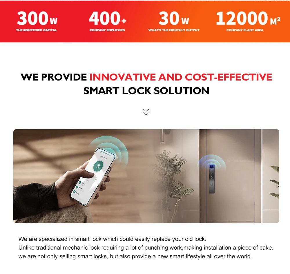 * supplier of Xiaomi, Lenovo, Hisense, Haotaitai, Jindian smart lock * Zhongshan A level taxpayer * 15 people R & D team * more than 180 staff * owner with more than 15 years experience in lock fields * more than 6 years production experience