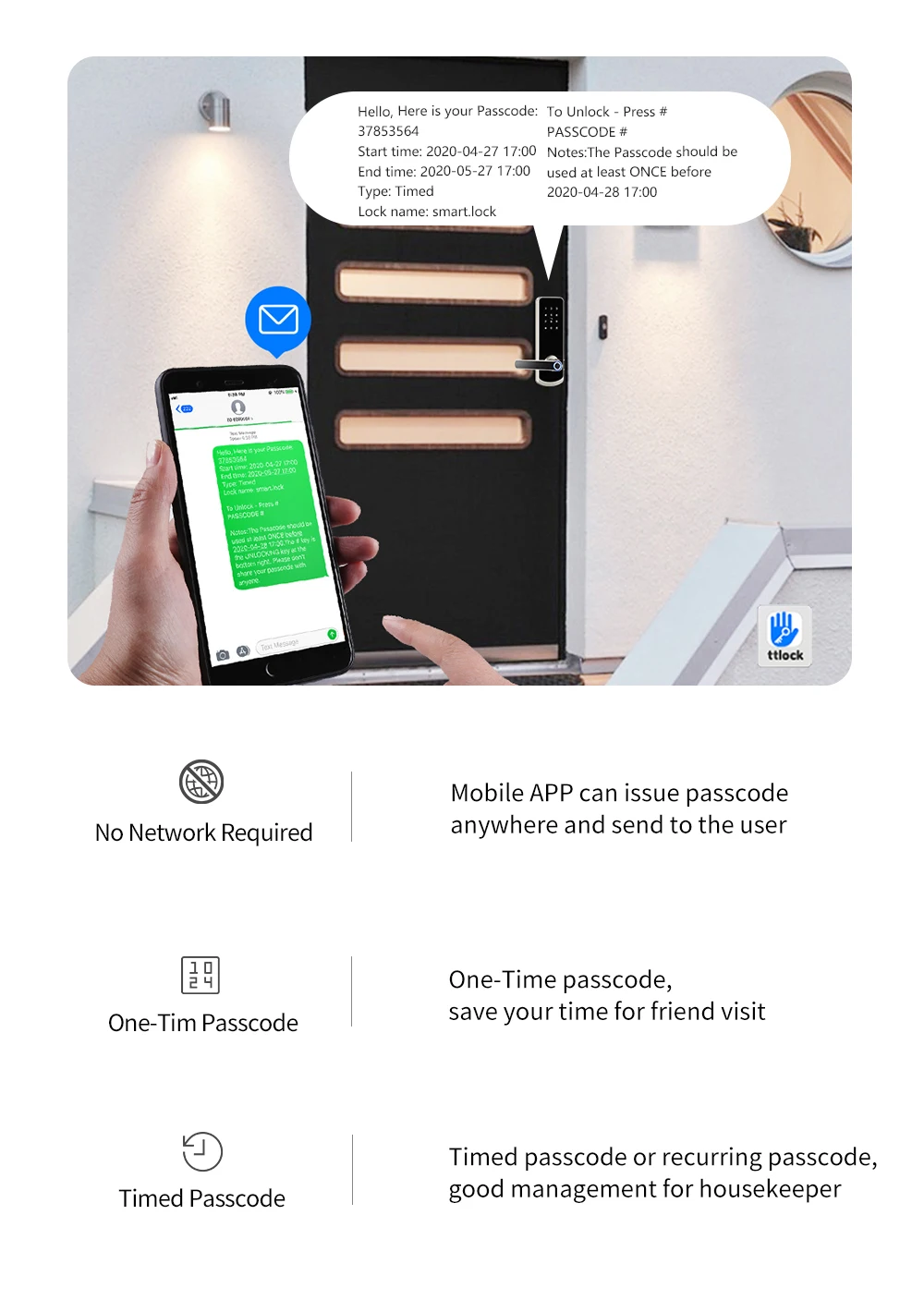 product: passcode digital APP phone enabled fingerprint door handle lock