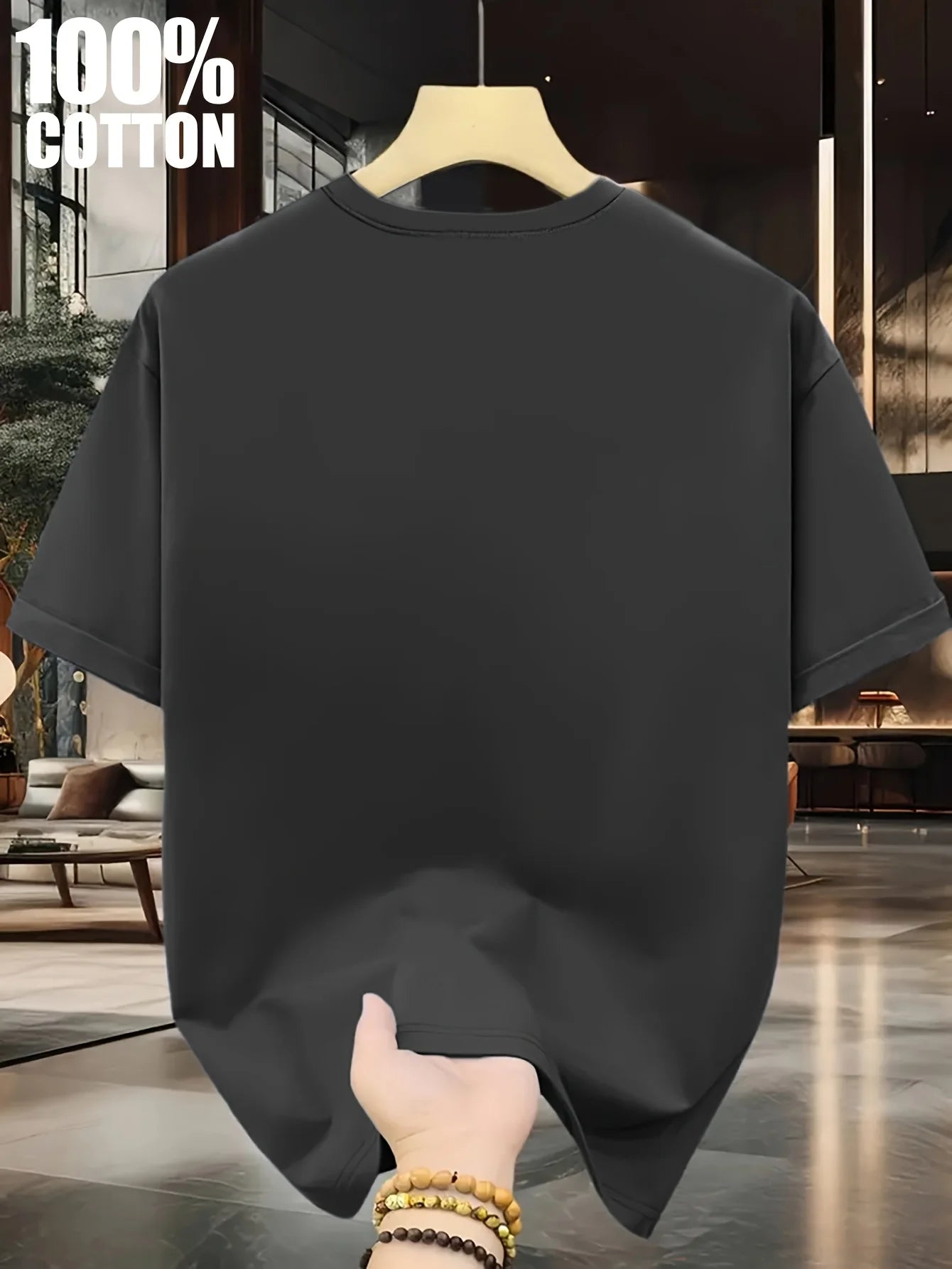 Men's Summer 100 Cotton Fashionable Casual Sports Loose Large Whale Pattern Printed Round Neck Short Sleeve T-shirt Top